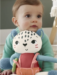 The FISHER-PRICE Planet Friends plush panther is designed for gentle sensory stimulation of the littlest ones. High-contrast patterns attract attention, soft textures and ears encourage tactile exploration, and crinkly “booties” invite squeezing and listening. Long legs, straps, and a sliding ring motivate babies to grasp, pull, and practice fine motor skills.