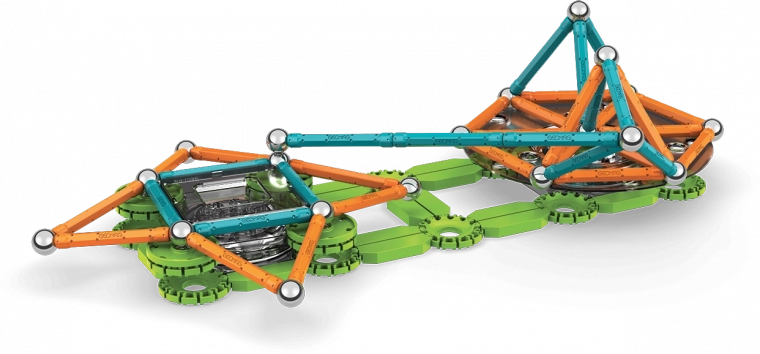 GEOMAG Mechanics Motion Gears magnetic building set: gears, bearings, and chain reactions. STEM fun from age 7, made from recycled materials.