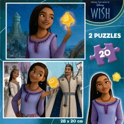 Discover fun for young puzzle lovers with this practical set of two jigsaws. Each puzzle has 20 pieces and measures approximately 28 × 20 cm when completed, an ideal size for small hands and a play mat. High-quality printing and sturdy pieces ensure long-lasting use and repeated assembly.