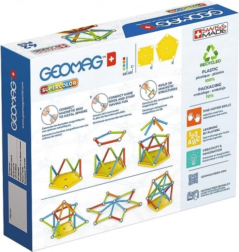 Explore creativity with Geomag's 42-piece Magnetic Building Blocks Supercolor Panels. Made from 100% recycled materials, these vibrant blocks develop skills and environmental awareness.