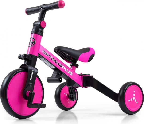 Thanks to the high quality of materials used in Optimus Plus, a safe and comfortable ride is ensured. Foam wheels offer a smooth ride with high comfort. Adjustable seat height allows adjustment to the child's size, while handlebar rotation limits enhance safety. This versatile product is suitable for children from 12 months, developing motor skills, strengthening leg muscles, and overall coordination. The compact design is ideal for easy transport and storage.