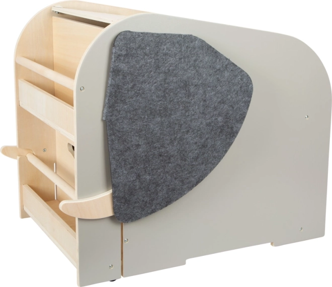 The box offers generous space for larger toys, front compartments for books and stationery, and a pull-out rod between the “tusks” for hanging a drawing paper roll. High-quality felt ears hide secret openings, and the rotating “elephant tail” serves as a handy handle for opening and closing and can hide small items.