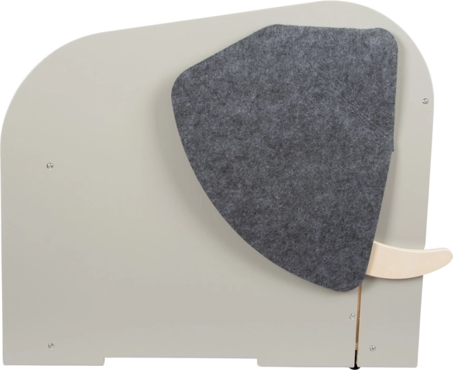 Between the “tusks” is a pull-out wooden rod for hanging a roll of paper – kids have drawing materials at hand while keeping things tidy.
