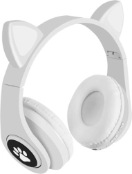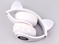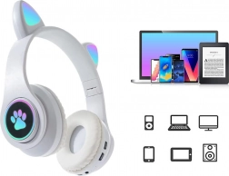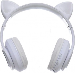 Wireless headphones with cat ears with LED backlight, Bluetooth, FM radio and MP3 – White