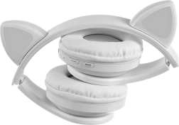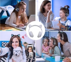 Stylish wireless headphones with cat ears and RGB LED lighting will delight both kids and adults. They offer Bluetooth 5.0, playback of MP3 from micro SD, FM radio, and a built-in microphone for calls. Soft ear cushions, a foldable design, and up to 6 hours of battery life ensure comfortable, cable-free listening.