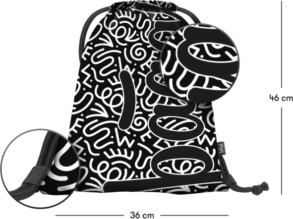 • Practical pencil case without contents and a washable drawstring bag for shoes or sports