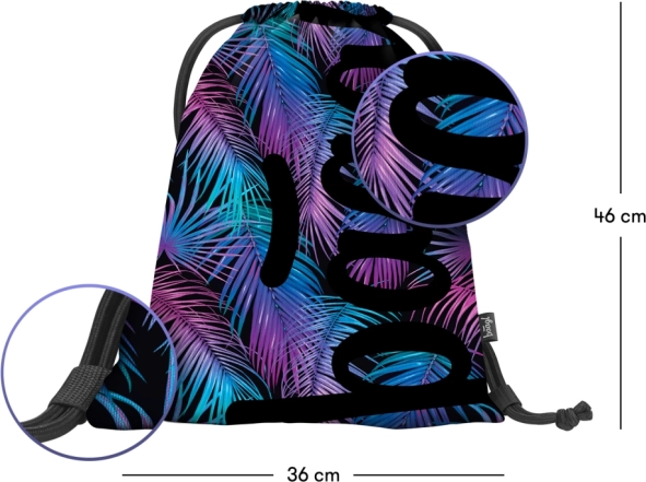 Discover a complete school kit in a unified palm-leaf design. The ergonomic backpack with an organizer and a 15" laptop compartment provides clarity and comfort, the pencil case keeps writing tools organized, and the drawstring bag is ideal for shoes or after-school activities. Thanks to its sturdy construction, padded back, and durable materials, the set is ready for everyday school use.