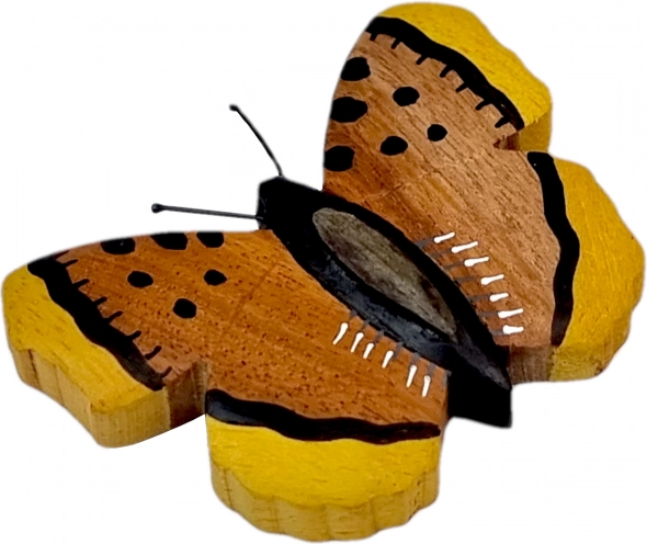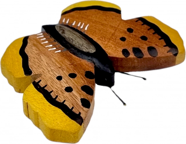 Bring a touch of nature into your home with this wooden butterfly-shaped magnet. Each piece is handmade and hand-painted, with its color palette derived from a combination of up to five types of wood — from light gmelina and yellow breadfruit to the darker cassia. The result is an authentic look with fine wood grain.