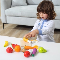 A varied range of foods teaches kids to recognize shapes, colors, and names, and encourages creative role play in the kitchen.