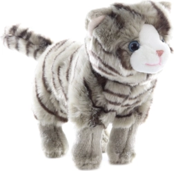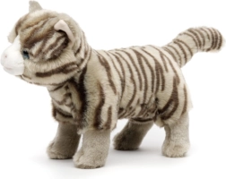 Soft plush with subtle striping and blue eyes looks convincing and invites cuddles.