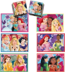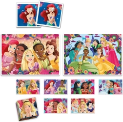 Discover the magical world of DISNEY PRINCESSES with a rich set of activities for kids. Two puzzles measuring 24 × 17 cm with different piece counts, a classic memory game, and building cubes ensure hours of fun and learning. Thanks to the unified picture size, children can easily progress to more challenging assembling.