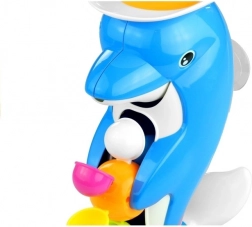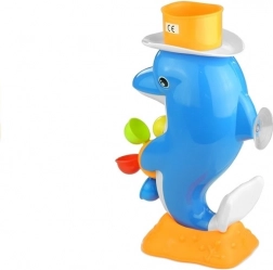 Turn every bath into a fun game by filling the hat on the dolphin's head with water. Then the water flows through several colorful wheels which start spinning. The toy comes with a suction cup, allowing it to be easily attached to the wall or tub, ensuring its stability during play.