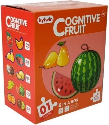 This cleverly designed set offers five standalone mini puzzles with fruit themes that guide children step by step. Each box adds pieces and increases the challenge (4–6–8–10–12), so the child naturally progresses and strengthens their skills. Fruit names in English are printed on the back to support early language awareness.