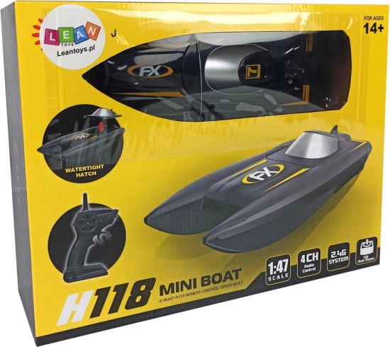 The modern 2.4 GHz system ensures a reliable signal up to 50 m and allows multiple boats to run simultaneously.
