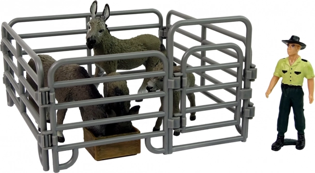 4× donkey figure, 1× farmer figure, gray fence pieces