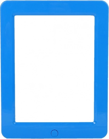 - backlit board, 4× neon marker (blue, green, pink, orange), cleaning cloth, 3 double-sided stencils, 3D glasses, suction cups for hanging