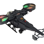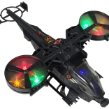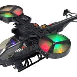 The helicopter has large rotating propellers that light up in various colors and are complemented by sound effects imitating start-up and shooting. Thanks to the wheels located on the underside, the helicopter can move on the ground.