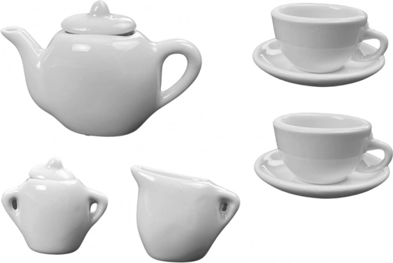 The set includes everything necessary for creation and painting, including a porcelain tea set and its own colors.
