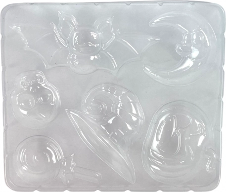 The set includes various molds with motifs like bat, skull, pumpkin, or moon. Perfect for Halloween decorations!