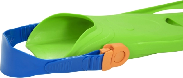 The fins with an adjustable strap adapt easily to the foot, improving propulsion and stability in the water. Latex-free materials and UV protection enhance safety and comfort for use in the sun, pool, or sea.