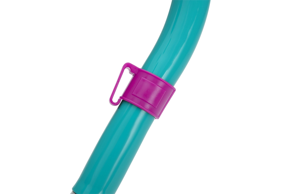 The snorkel is equipped with a soft silicone mouthpiece for comfortable breathing and a top splash guard to help prevent water entry. A practical clip for attaching to the mask keeps everything in place for the most natural movement in the water.