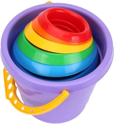 A toy that practices creativity and logical thinking skills, it has no set rules for play—the way it is used depends on the child, their parents, and their imagination. We are sure that the vibrant, fairy-tale colors and high-quality workmanship of the toy will encourage every little one to learn through play. One of the components is a bucket with a handle into which all the pieces can be placed.