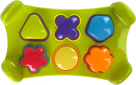 The top panel with six shapes in vivid colors supports color and shape recognition and keeps your child engaged.