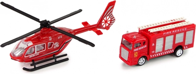 The package includes a fire truck, helicopter, and 6 cards with different vehicles. Great fun for children from three years old, the toy complies with the EN71 standard.