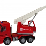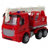 Red fire truck with a white extendable ladder and movable wheels. The side text 'FIRE CONTROL' adds a realistic touch to rescue actions.