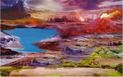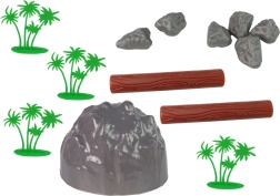 - 2 pieces of wood, 4 palm trees, a large rock, 6 small rocks