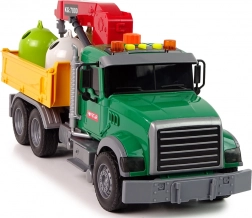 Realistic light and sound functions (beacons, horn, reverse) bring the true atmosphere of work machines to play. The toy has an educational benefit—kids learn the basics of ecology and waste sorting while developing fine motor skills and imagination.