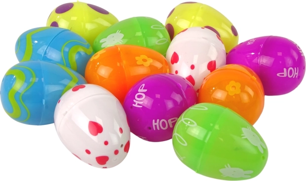 The eggs are lightweight, made of plastic, and completely safe for children. Ideal as an inspiration for play, where children search for eggs with different surprises inside.