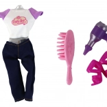 The set also includes interchangeable outfits for the large doll, adding to the variability and styling of Lucy. Additionally, smaller accessories like a purse, hairdryer, comb, and towel provide more realism to the play and support children's creativity.