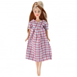 Doll Lucy features long brown hair and a pregnancy belly that can be detached and attached, allowing children to mimic pregnancy stages. Her elegant dress in a checkered pattern highlights her role as a future mom. This set is full of fun and educational elements that expand play possibilities.