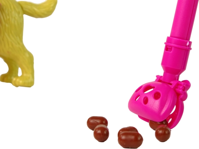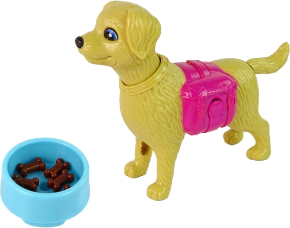 The yellow puppy has a movable tail, ears, and mouth. Thanks to the pink dispenser and the bowl with kibble, you can feed the puppy again and again and spark imagination.