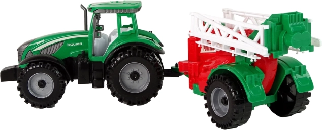 This finely detailed green tractor with a red‑green sprayer brings kids plenty of action and imagination. Thanks to the friction drive, it moves easily forward and backward, while the movable sprayer arms enable realistic farming scenarios.