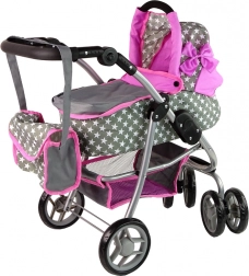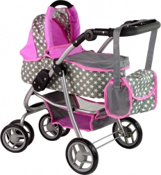 The stroller combines pink and gray colors with a star pattern, giving the play of being a mom a realistic look.