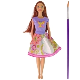 This charming doll with long dark hair captivates at first sight. She wears a beautiful dress that children can color as they wish using the included brush. A great choice for young fashion designers and anyone who loves crafting.