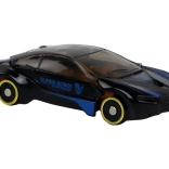 In car form, the robot becomes a futuristic vehicle with yellow rims and blue details that catch the eye.