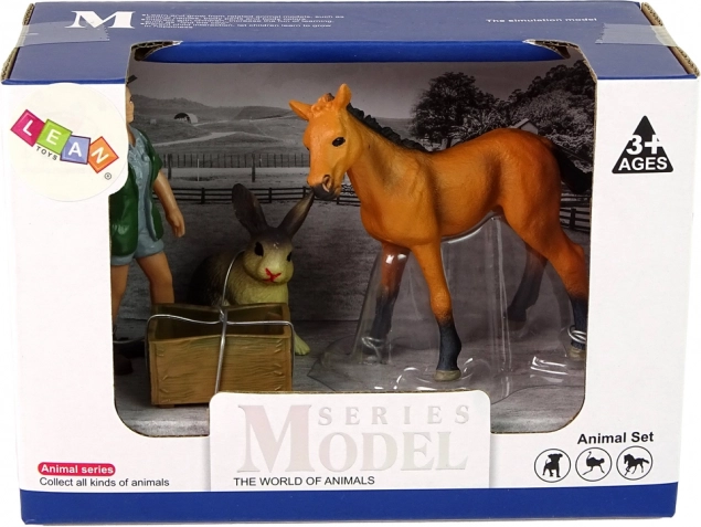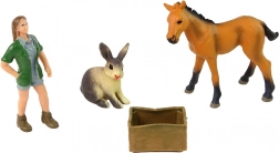 A figure set with a light-colored horse, a rabbit, and a veterinarian for creative play. Realistic detailing, hard rubber, and non-toxic materials ensure safe fun for children ages 3+.