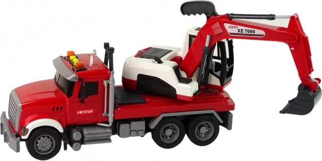 Realistic construction set for kids: dump truck with trailer and an excavator with a 360° rotating cab. Light and sound effects, friction drive, and an adjustable bucket deliver action-packed fun and develop imagination and fine motor skills.
