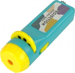 Discover a compact children's projector that casts 24 images onto the wall from 3 interchangeable reels (insects, dinosaurs, fruit). The lightweight projection torch with a key ring is ideal for travel, works best in the dark, and supports learning through play. Power 2× AA (batteries not included). Dimensions 12×3×3 cm, for children 3+, certification CE/EN71.