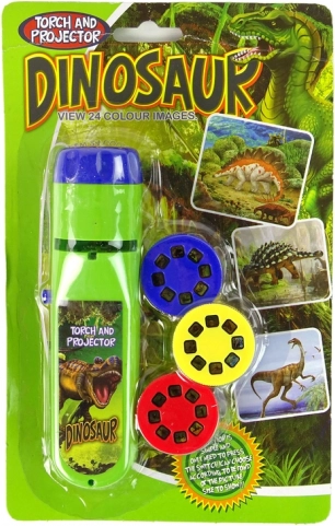 Discover the fascinating world of dinosaurs with this compact projector flashlight. Its easy portability makes it suitable for any adventure. The set includes 3 interchangeable disks, each featuring eight different dinosaurs.