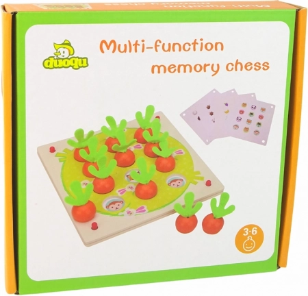 Discover the magic of learning through play with a wooden memory game featuring fruit and vegetable themes. The sturdy wooden board with cutouts and colorful pieces develops memory, logical thinking, and fine motor skills. Includes 7 double-sided game templates for greater variety and hours of fun at home or on the go.