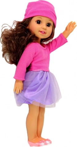 An elegant doll in a pink hat, top and purple tulle skirt enchants at first sight. Pleasant materials and careful workmanship ensure safe play and long-lasting durability. Long, soft brown hair is made for new hairstyles every day.