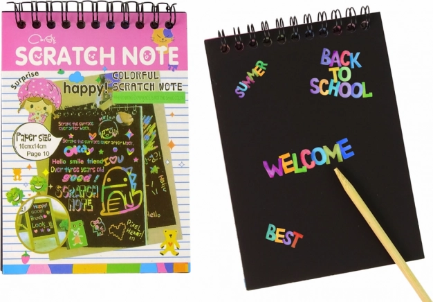 Scratch Notebook is an interactive toy designed for children from 3 years old. It contains 10 black pages measuring 10 cm x 14 cm. A creative toy that enhances manual skills and stimulates children's imagination.