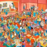 Dive into a world full of colors and humor with the puzzle by Jan van Haasteren. These illustrations include iconic motifs like the shark fin or stray hands, which fans instantly recognize.