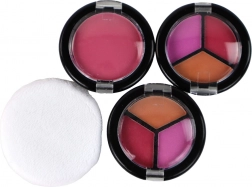 An eyeshadow palette in pink, purple and blue shades complemented by gold and silver glitter will delight every young stylist. Two lipsticks and contouring palettes complete a playful makeup look.