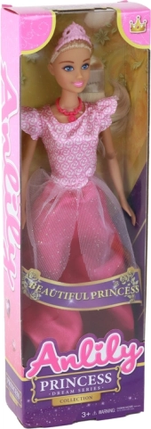 Doll Anlily in an elegant pink dress and enchanting tiara is an ideal companion for little princesses. Her long blonde hair and tasteful necklace add charm and elegance to the doll, fostering children's creativity.