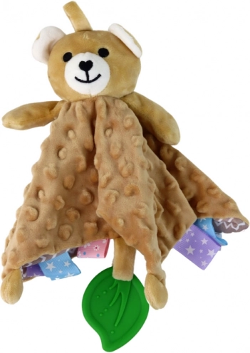 Introducing the plush blanket with bear, which combines softness and functionality to delight and soothe your little child. It includes a teether and colorful ribbons for sensory stimulation.